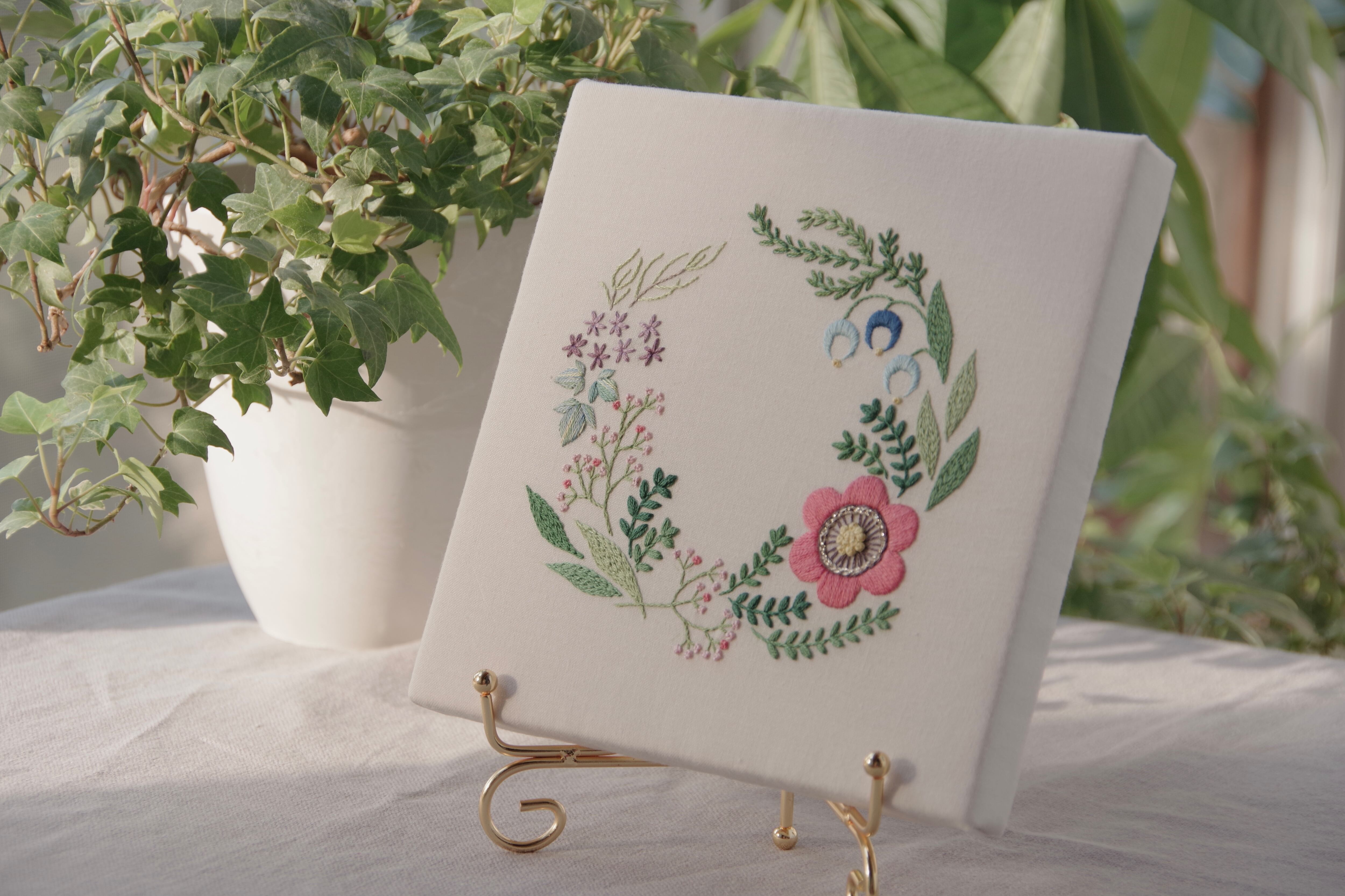 庭に咲く草花を部屋に飾るような気持ちで刺繍しました。一生懸命にいつも光に向かう植物に、美しさを感じます。