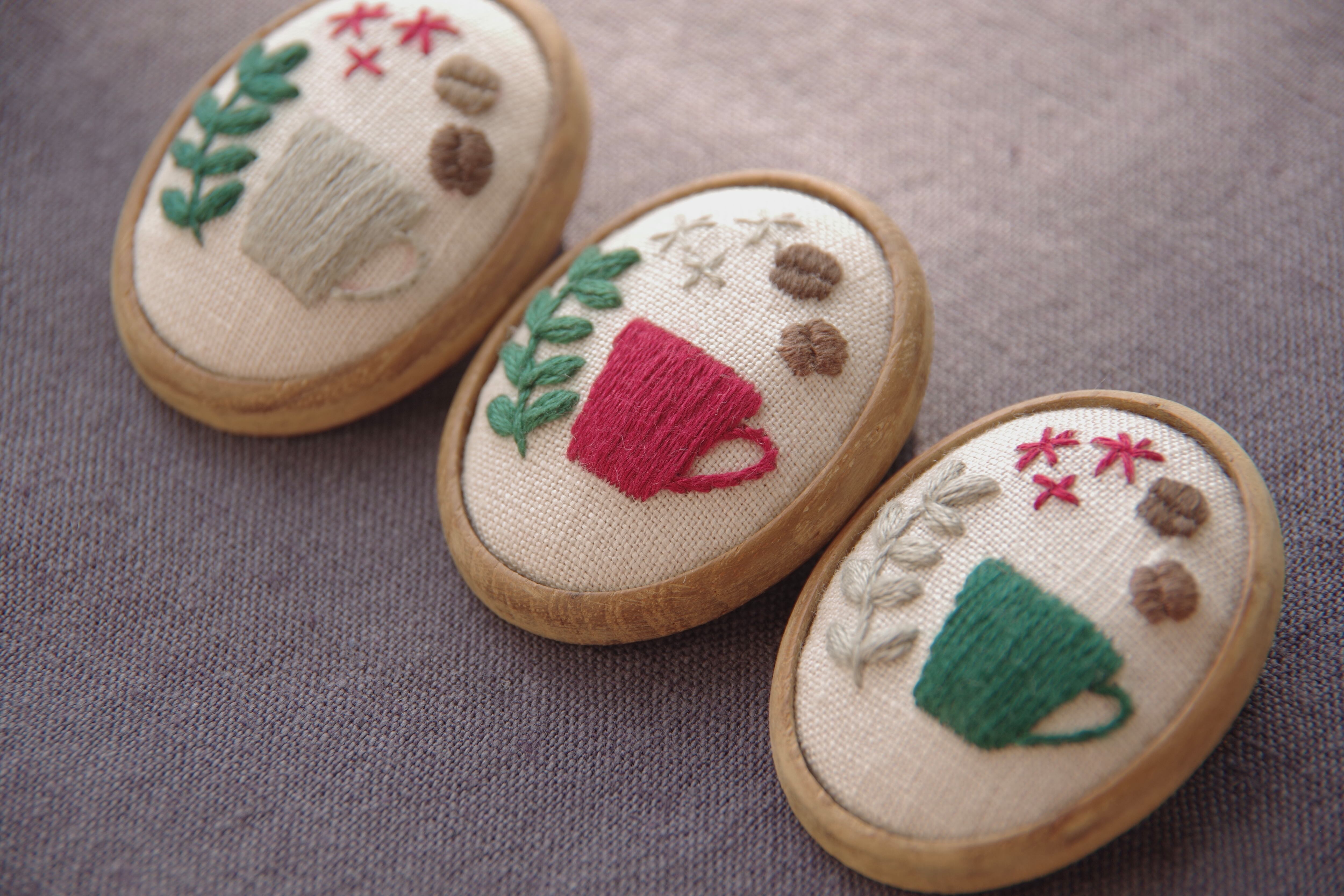刺繍ブローチ「クリスマスカラーのコーヒーカップ 」