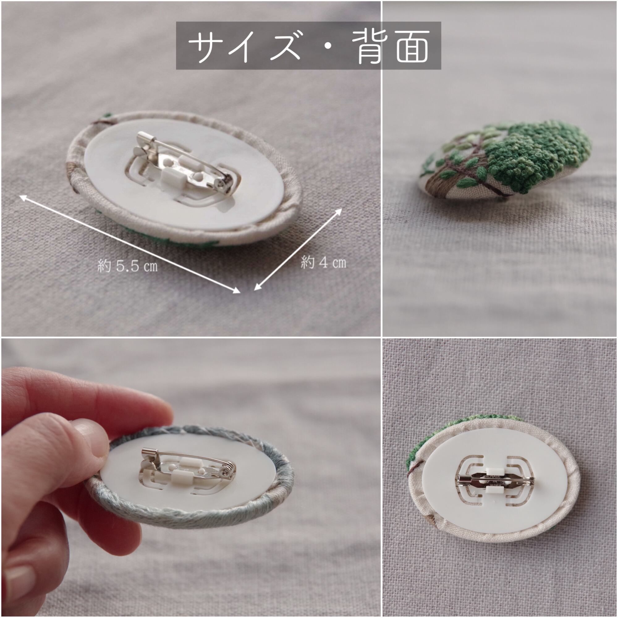 ・縦4cm、横5.5cmの楕円形、プラスチック製のブローチ台です(くわしくは5枚目の写真をご覧ください)